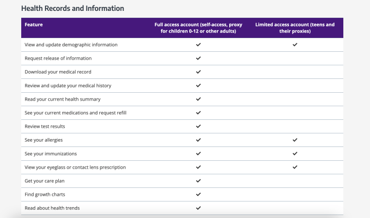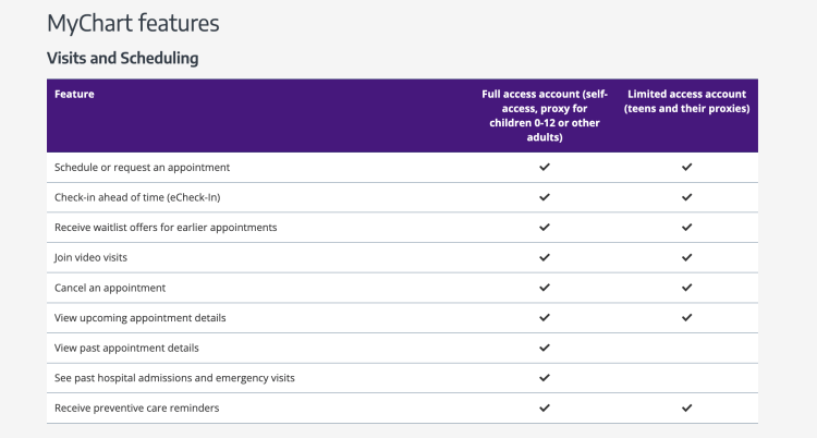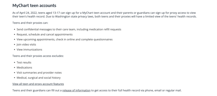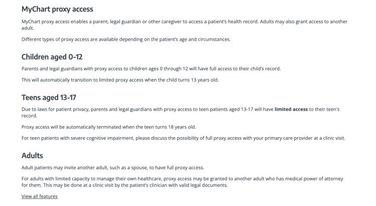 I helped teens and their caretakers understand the differences between the child, teen and proxy MyChart patient accounts. I made it easy for teens to sign up for an account if they wanted one. You can see the entire page here.